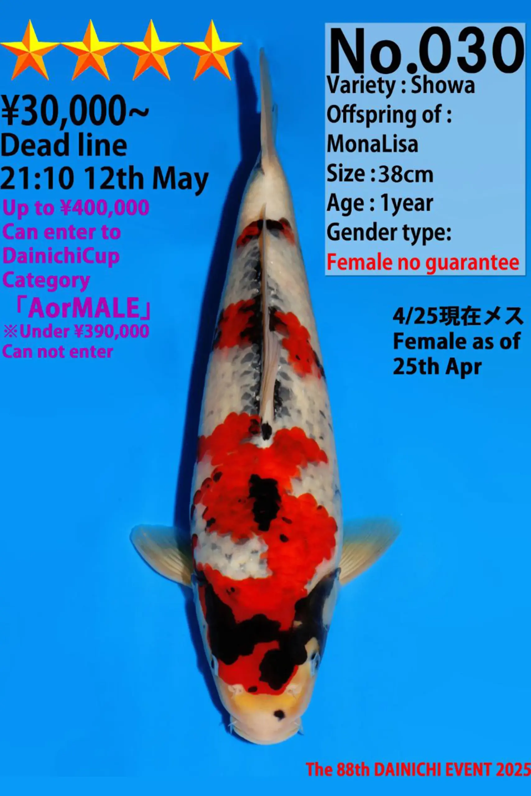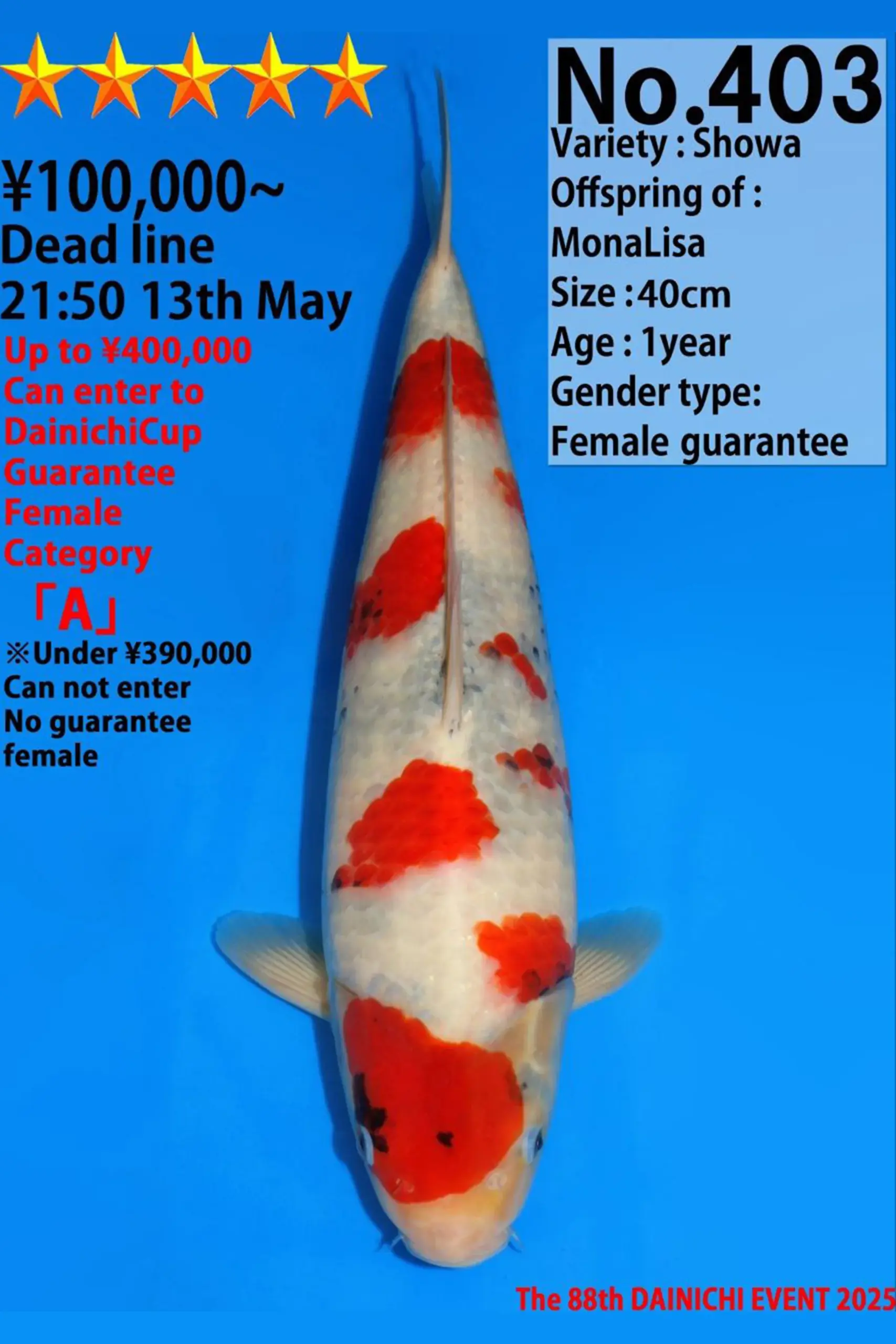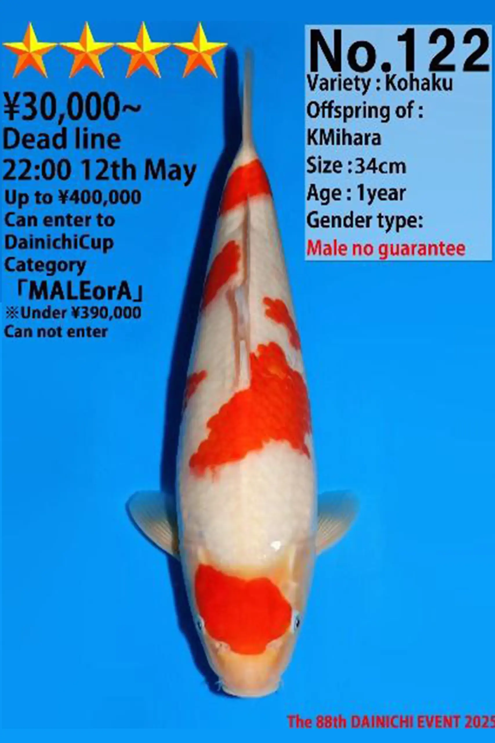เหมาะสำหรับนักสะสมตัวจริง, ผู้ที่ต้องการปลาคาร์ฟเพื่อส่งเข้าประกวดในสนามแข่งขันใหญ่ๆ อย่างจริงจัง หรือผู้ที่มองหาปลาคาร์ฟที่มีเพียงหนึ่งเดียวซึ่งมีทั้งคุณค่าทางใจและเป็นทรัพย์สินที่มีมูลค่าเพิ่มในอนาคตครับ
